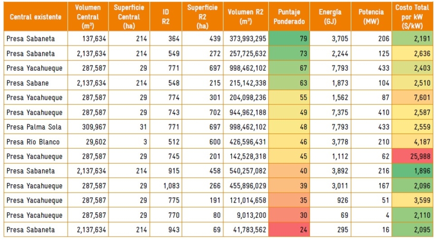 El estudio estima un potencial instalable de 2.76 GW de potencia de hidrobombeo para el país. Entre los sitios analizados, siete fueron clasificados como de alto potencial. Cuatro de ellos son nuevos desarrollos, situados en zonas con elevaciones y cuencas favorables, con capacidades de 27 MW, 39 MW, 77 MW y 88 MW (231 MW en total). Los otros tres aprovechan presas existentes, que podrían adaptarse para operar en modo reversible, con capacidades de 125 MW, 206 MW y 433 MW, alcanzando 639 MW combinados (Ver Figura 3)