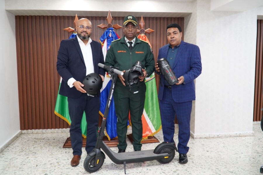 En un esfuerzo por reforzar la seguridad vial en el país, el presidente de la Central Nacional de Transportistas Unificados (CNTU), William Pérez Figuereo, realizó una importante donación de tres patinetas eléctricas con sus respectivos equipos de seguridad a la Dirección General de Seguridad de Tránsito y Transporte Terrestre (DIGESETT).